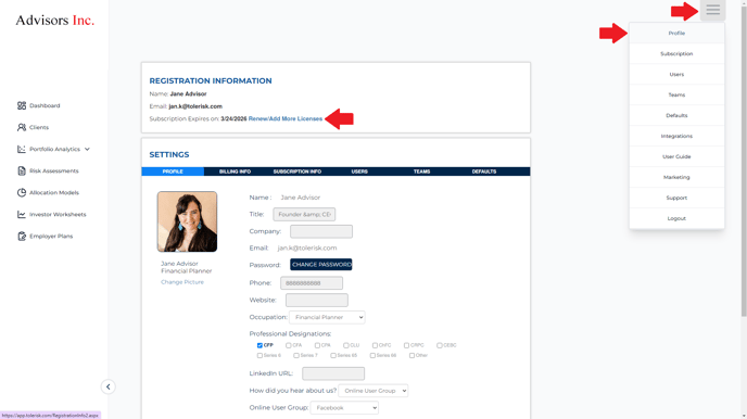To continue enjoying uninterrupted access to Tolerisk's features, you can easily extend your subscription or add more licenses through your account settings.
