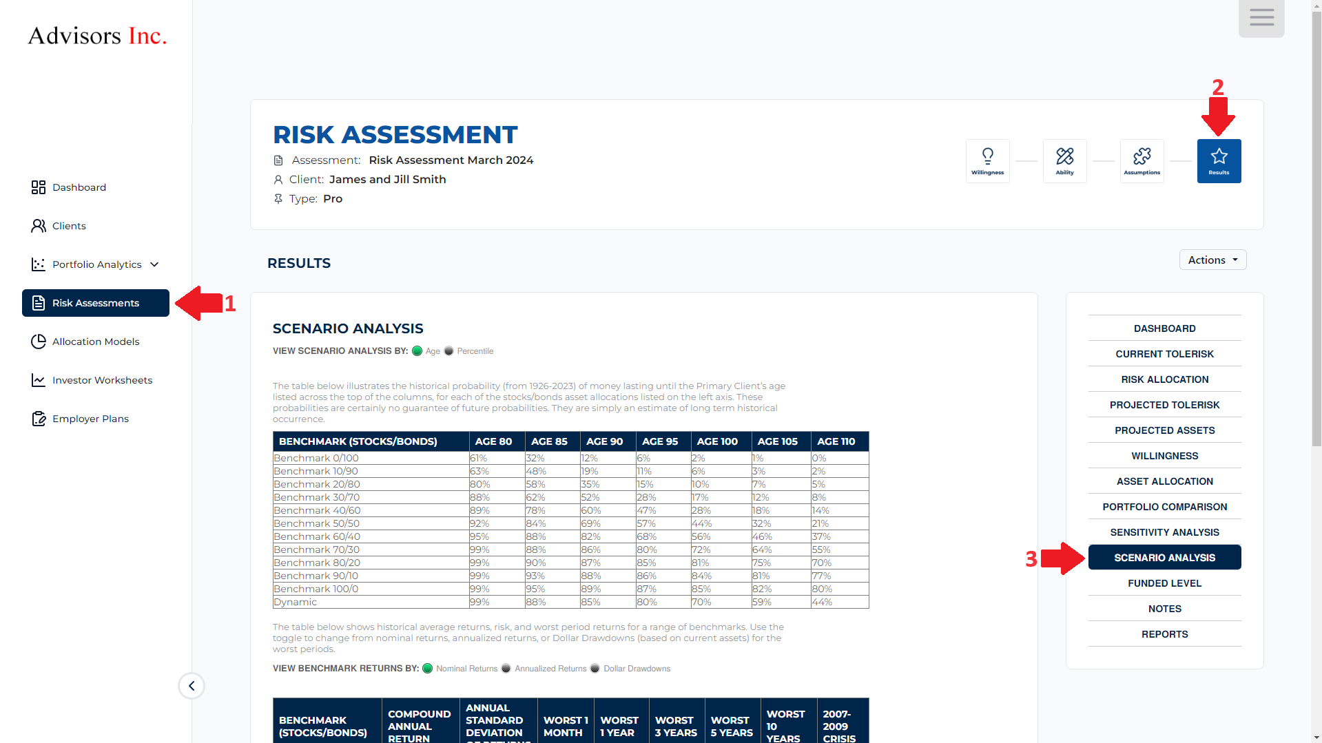- On the results page, you will see the "Scenario Analysis" tab located in the list on the right side of the page.