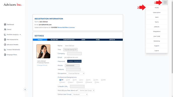 Keeping your registration and billing information up to date ensures uninterrupted access to your Tolerisk subscription. Follow the steps below to make any necessary updates.