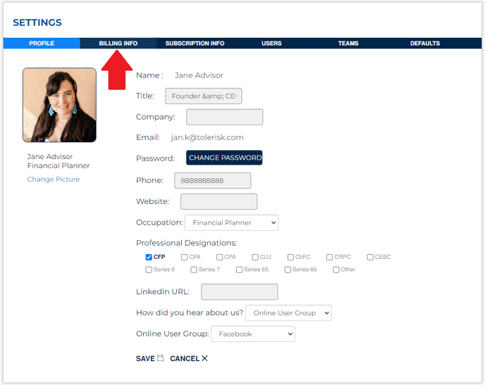 Select Billing Info.