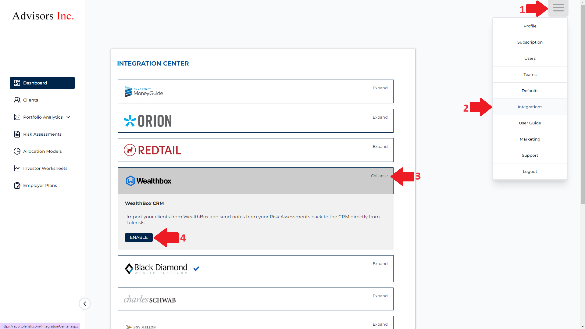 - Once you have enabled your Wealthbox integration, click the “Clients” tab.
