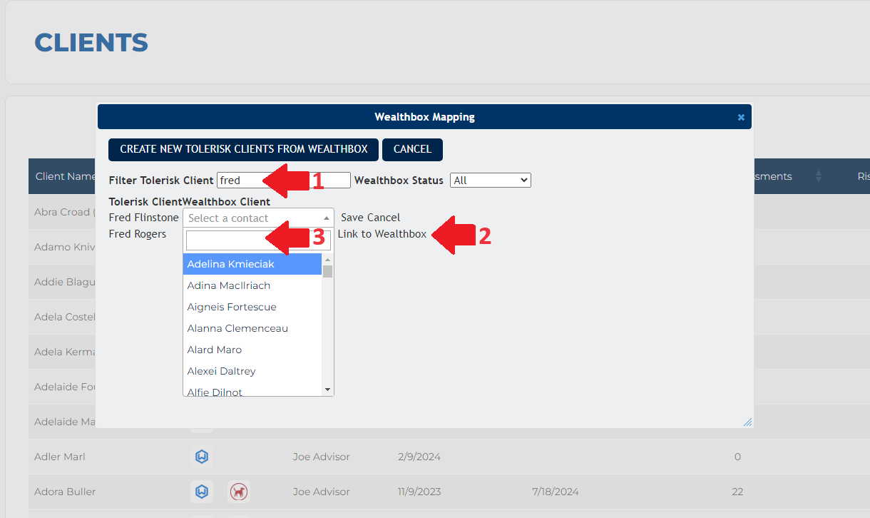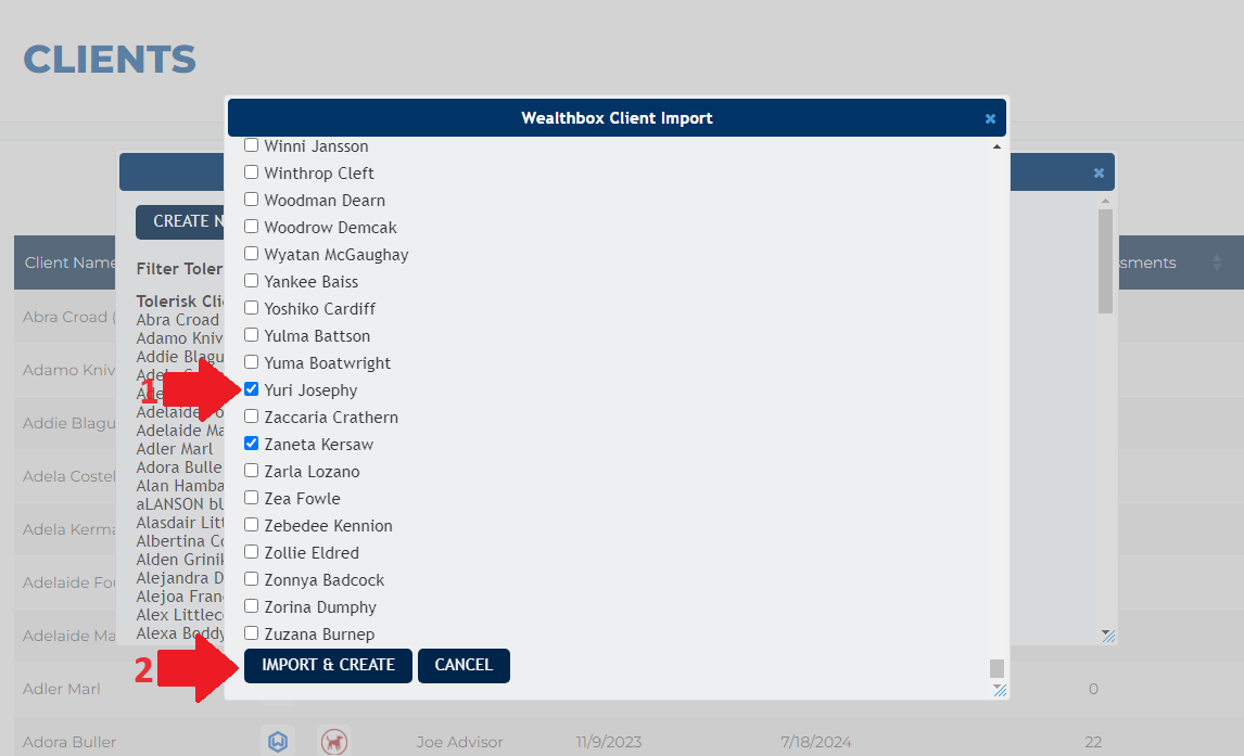 - Select the Wealthbox client that you want to import to Tolerisk.